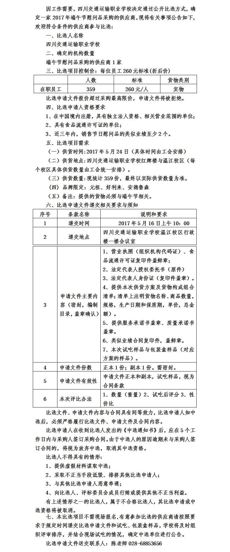 四川交通运输职业学校端午节慰问品采购比选公告-四川交通运输职业学校-官方网站